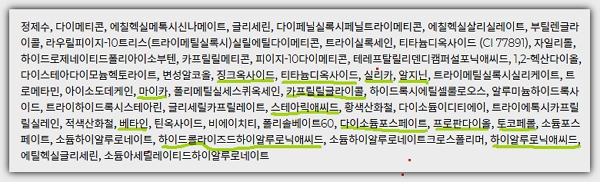 여기서 살펴보지 않은 나머지 성분들은 피부 보호, 보습, 부드러움 유지를 위한 성분들을 포함하여 점도 유지, 산폐방지, 방부제 등 등 대부분 제품화 하기 위해 넣은 성분으로 보시면 되겠습니다.